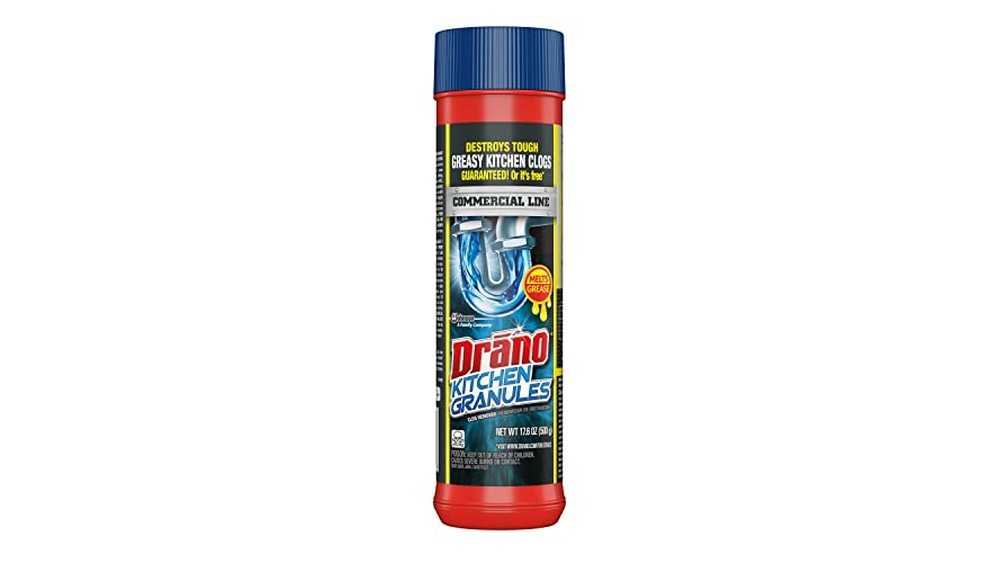Drano Kitchen Granules is a chemical drain opener designed specifically to tackle grease clogs caused by cooking oils and fats in kitchen sinks. Its powerful formula heats and melts stubborn grease blockages, restoring normal flow quickly and efficiently.