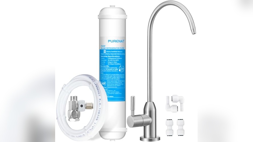 This PURENAT inline under sink water filter is designed to reduce chlorine, bad taste, odors, and other common contaminants from your household water without the need for a separate faucet. Its core filtration uses a coconut shell activated carbon block, which effectively improves water taste and quality, making it a reliable choice for water used in coffee makers, ice makers, or skincare routines.