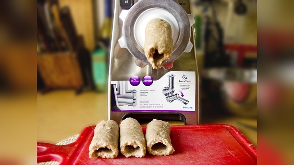 The kubbe attachment works by shaping ground meat and bulgur mixture into a tube with a hollow center. The meat grinder pushes the mixture through the kubbe tube, making it uniform in thickness and ready to fill.